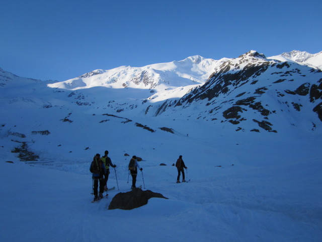 • Christoph, Georg, Doris und Ewald zwischen Rifugio Cesare Branca und Ghiacciaio dei Forni (19. Apr.)