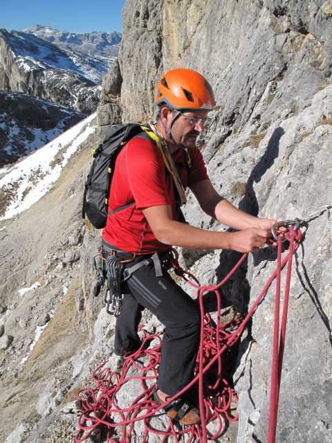 • 'Via del Buco': Axel am Stand nach der vierten Seillänge des ersten Teils